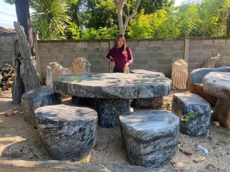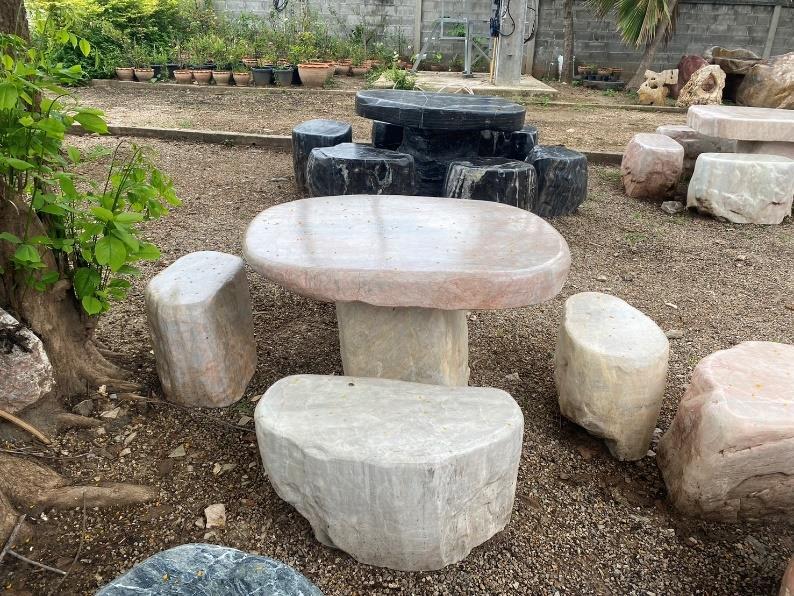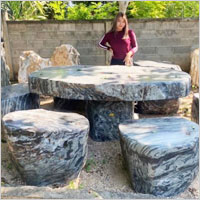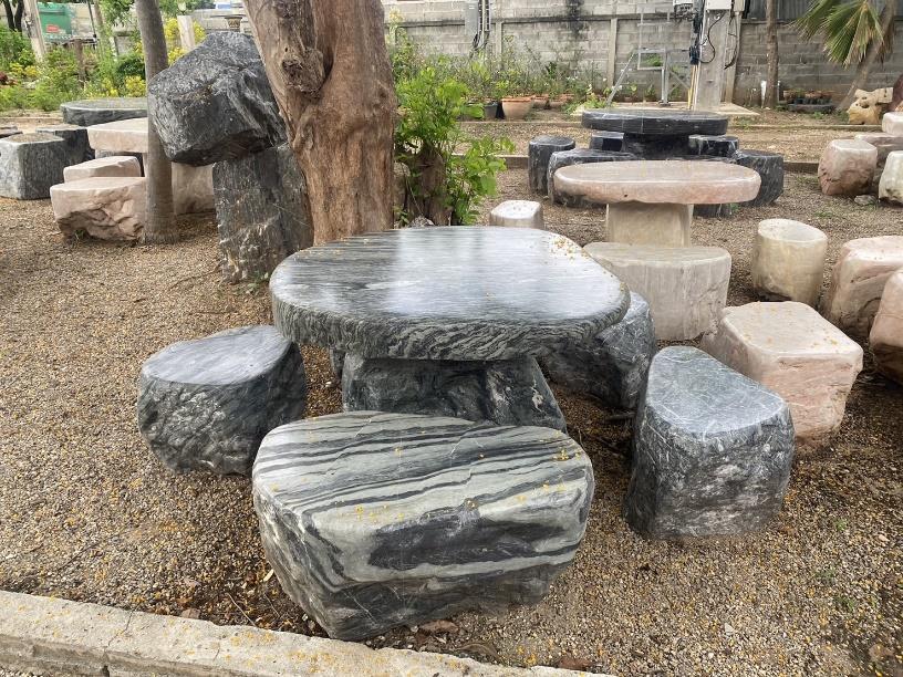 Imperoc heeft een royaal assortiment aan natuursteen tuintafels. Prachtige massieve stenen tafels ambachtelijk met de hand gemaakt van 100% natuursteen van tafelblad tot en met de tafelpoten. Er worden geen concessies gedaan aan de kwaliteit. Deze robuuste eyecatchers worden in Thailand voor ons met de hand bewerkt voor een schitterend pronkstuk bij u in de tuin. Iedere tafel is uniek. Er is geen natuurstenen tuintafel exact identiek dus u heeft altijd uw persoonlijke exemplaar.