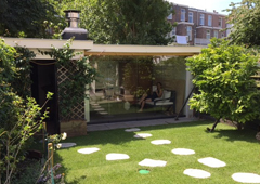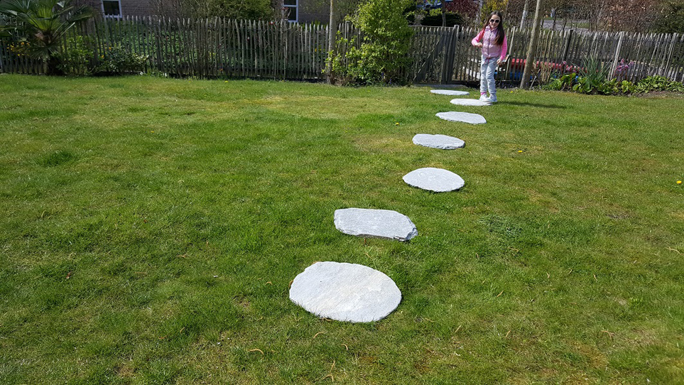 De meeste klanten leggen de stapstenen op het gras. Maar hieronder tref je nog meer originele toepassingen voor onze mooie exemplaren:- » vloeren
